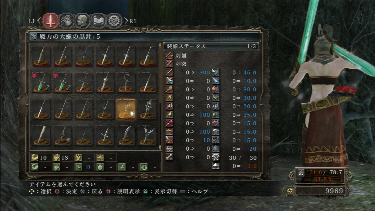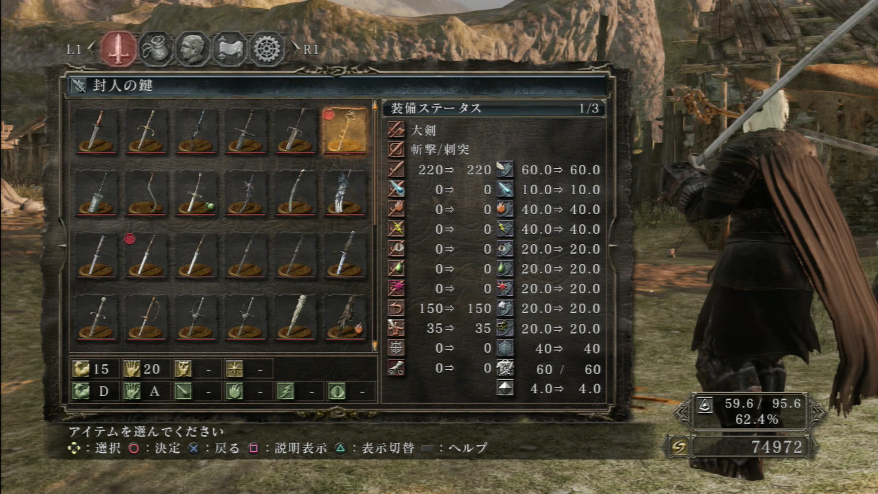 以前の性能覚えていない。15ほど増加。試し切りしてみると黒鉄に迫る火力。なによりカッコイイ
