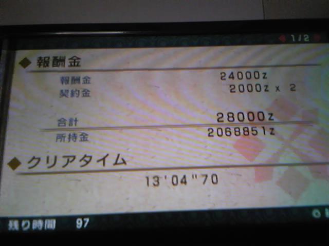 ・クリア後。レアを要求するが、属性開放3スロ2はこれ以外見当たらない。